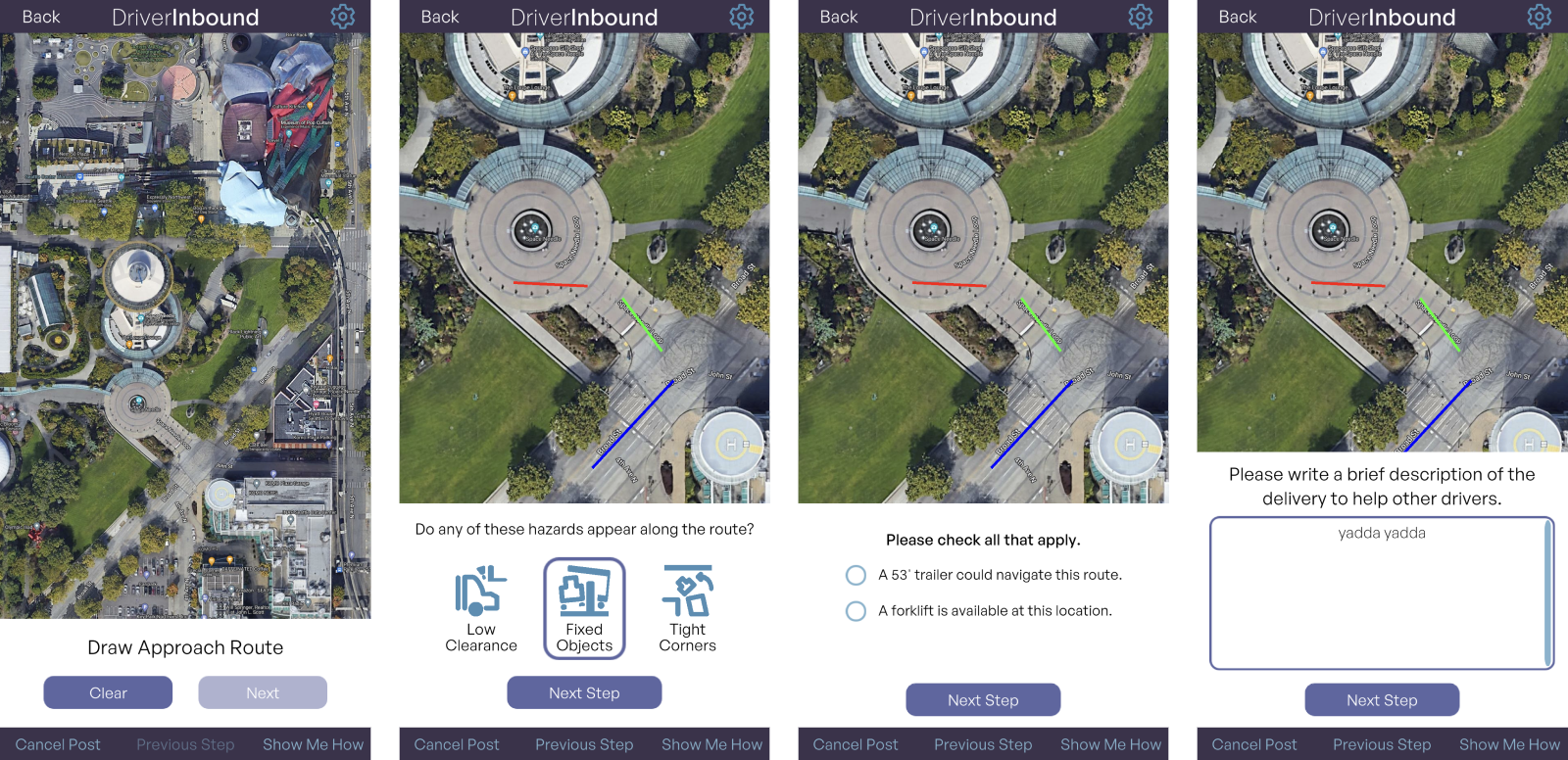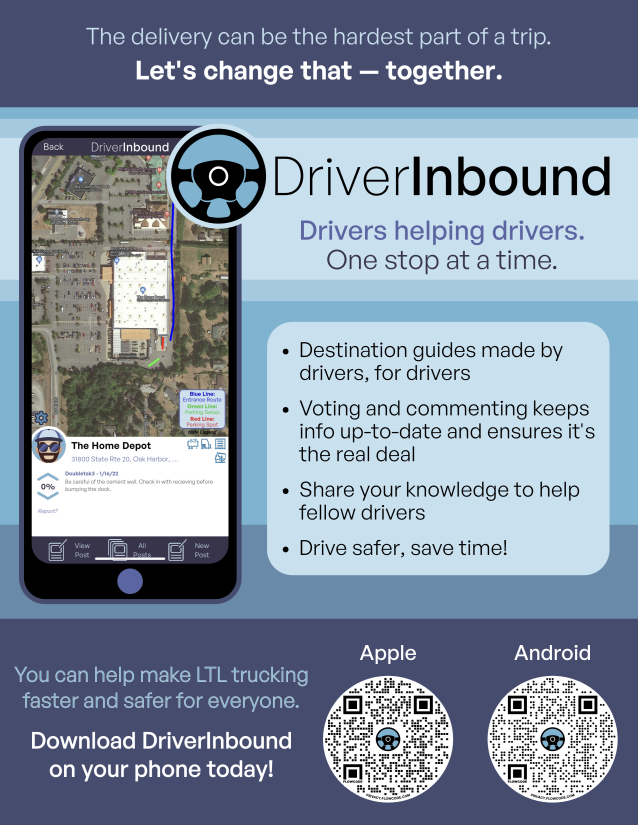 DriverInbound is a mobile app that aggregates user-submitted guides on approach and parking for delivery truck drivers. The app hosts guides for thousands of locations, making it faster, safer, and easier to deliver in a world where time is money.