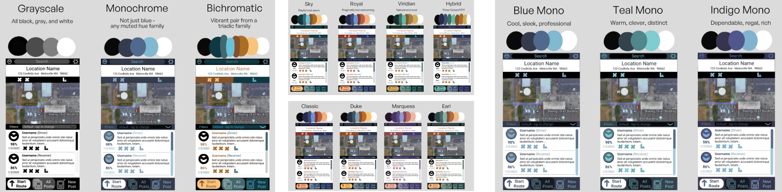 DriverInbound’s palette went through a few iterations, with the goal of pinning down the color language that would appeal to our drivers most. Blue and indigo were chosen alongside black and white for a dependable, professional energy. The project's font, General Sans, has similar visual features.